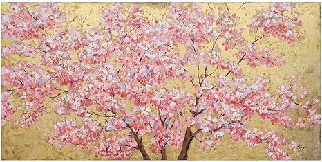 Amazon.com: Cherry Blossom Tree Wall Art 100% Handmade Oil Painting On Canvas Signed by Artist Home Decor 27.5" x 55": Paintings