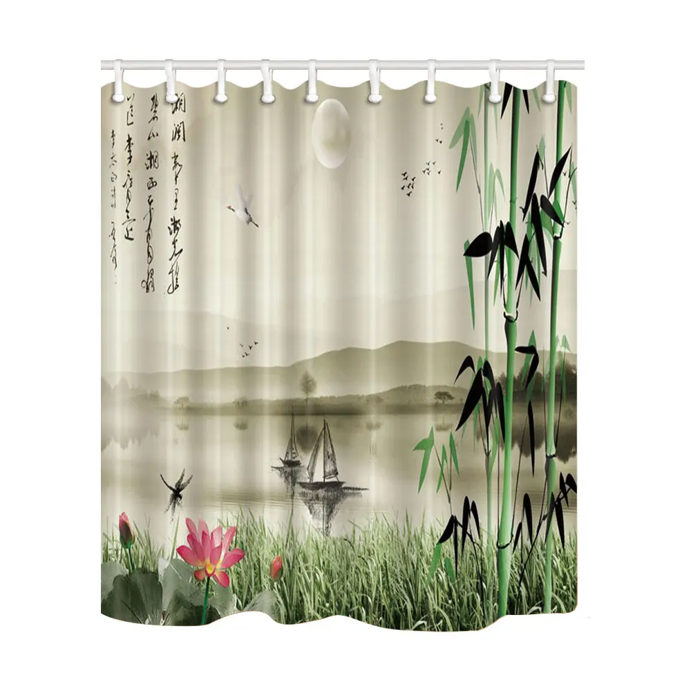 Creative Design Shower Curtains Chinese Ink And Wash Bath Screens Fabric Waterproof Mildew Proof Bath Tub Curtains With 12 Hooks Shower Curtains Aliexpress